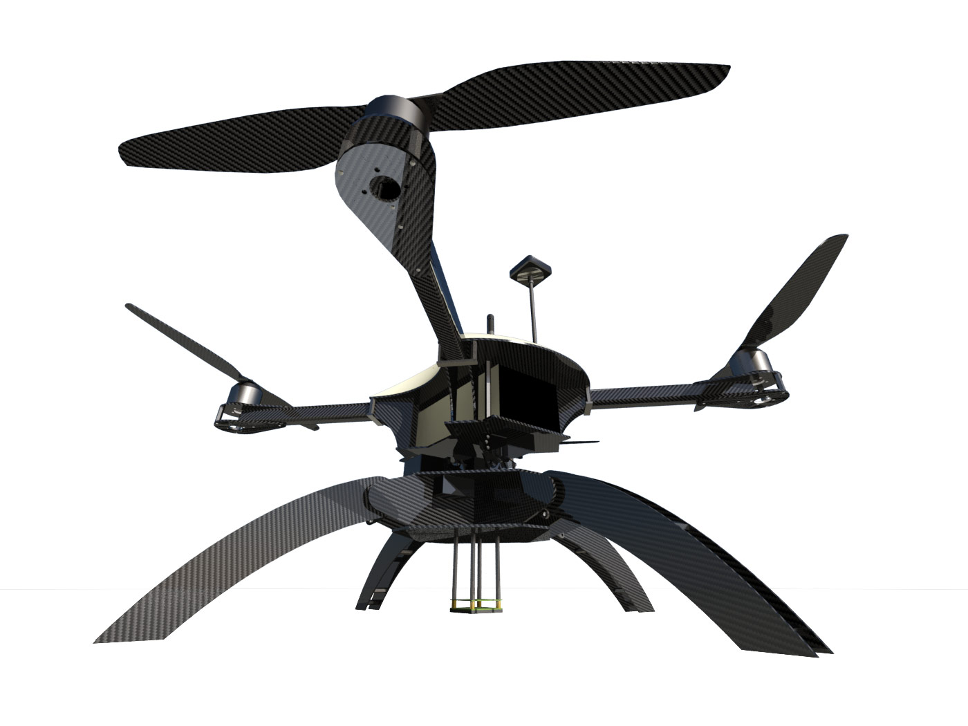 The FVMC4 was specifically designed for precision agriculture and inspection. Bringing the camera in line with the centre of gravity has allowed for weight saving, less wind resistance, and protection of the expensive cameras. It is capable of flying an infrared and multi-spectral/hyperspectral camera in tandem completely autonomously. The gimbal is designed to be easily switchable in the field in order to run multiple different setups without needing multiple copters or long down-times.