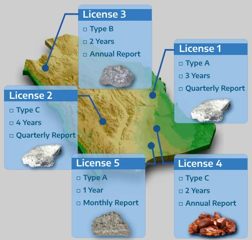 Easily manage your mining licenses in one centralized platform. StockViz streamlines the process of handling multiple licenses across different sites, ensuring full compliance with Saudi mining regulations.